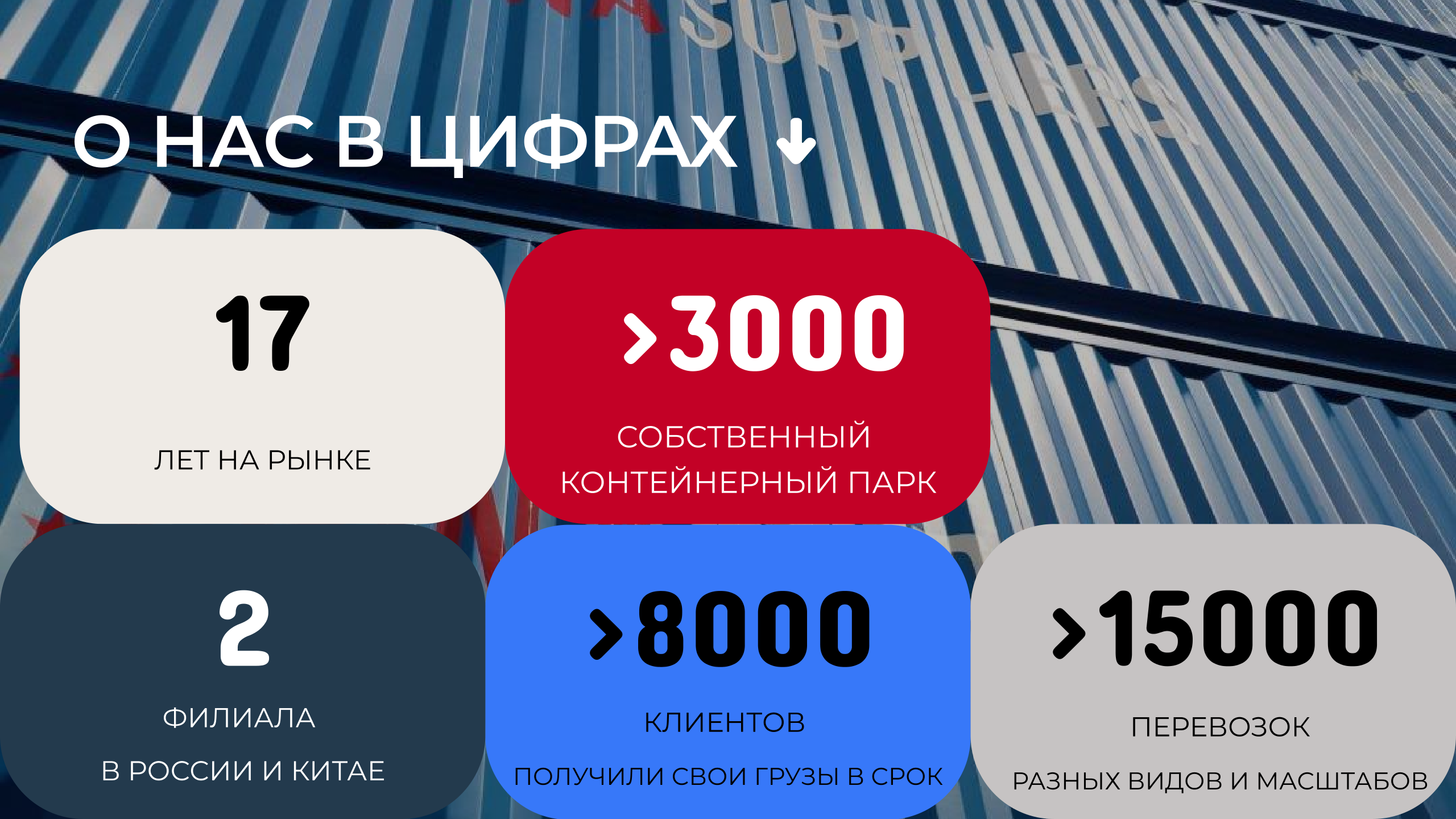 Мы предоставляем логистические услуги с 2008 года. Собственный офис в Китае обеспечивает оперативное решение вопросов без лишних посредников. Для каждого клиента - персональный менеджер, который глубоко понимает его потребности и оперативно решает любые задачи.